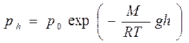 Давление на высоте h газа с молярной массой М относительно уровня моря, где давление р0 считается нормальным, равно