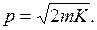 Связь импульса p с кинетической энергией К нерелятивистской частицы определяется соотношением: