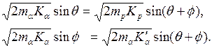 В этом случае импульс частиц можно выразить через их кинетические энергии по формуле (29.1) и определить энергию налетающей α–частицы непосредственно перед соударением.