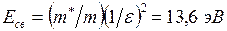 Если бы примесь находилась в вакууме, то энергия связи электронов с положительными центрами равнялась бы просто энергии ионизации, равной для мышьяка 9,81 эВ. Однако, благодаря тому, что примесь находится в полупроводнике, энергия связи электрона очень сильно уменьшается. Это происходит по следующим причинам. Движение электрона в поле заряда, примесного атома, происходит в кристалле, и напряженность электрического поля уменьшается в e раз (e – диэлектрическая проницаемость полупроводника). Обычные значения e полупроводников заключены в интервале от 10 до 20, но могут быть и значительно большими у полупроводников с малой запрещенной зоной. Электрон, движущийся под действием электрического поля в кристаллической решетке, характеризуется эффективной массой