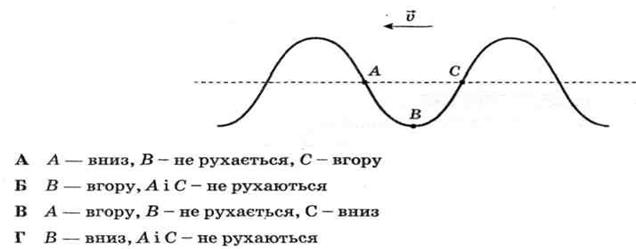 Запитання 29.5. Т. По натягнутому джуту поширюється поперечна хвиля (див. рисунок). Визначте напрям руху точок А, В, С?