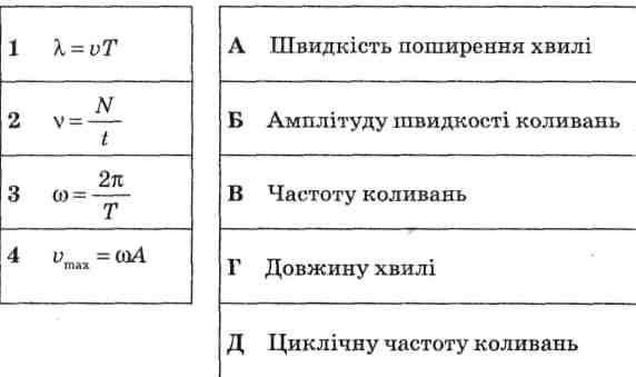 Запитання 29.7. Установіть відповідність між формулами та величиною, яку можна обчислити за цими формулами.