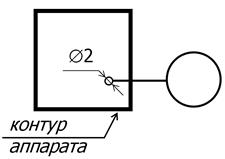 | Обозначение постоянного подключения прибора к трубопроводу, аппарату |