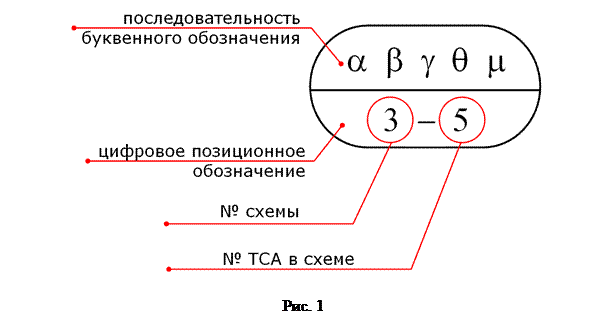 Примеры обозначений ТСА с указанием функциональных признаков из основного перечня приведены на рис. 3.