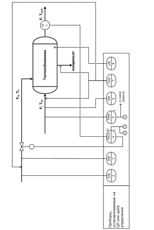 Рассмотрим пример чтения схемы автоматизации на примере типовой схемы автоматизации парожидкостного кожухотрубчатого теплообменника (рис. 5).