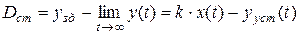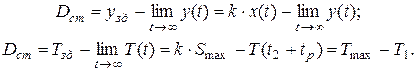 Установленное равновесие будет сохраняться в системе до момента времени t2, в который в системе начинает действовать некое возмущение. Предположим, что это возмущение состоит в падении входного напряжения (см. рис. 7). В результате, при неизменном положении регулятора S(t2)=Smax температура электрообогревателя начнет понижаться, и, после завершения переходного процесса в момент времени t2 + tр достигнет некоторого нового значения Т1, отличного от требуемого Тmax. Система придет в состояние равновесия, но в этом состоянии будет иметь место статическая ошибка управления Dст, равная величине отклонения фактического, установившегося после завершения переходного процесса значения управляемой величины от заданного значения (см. рис. 8):