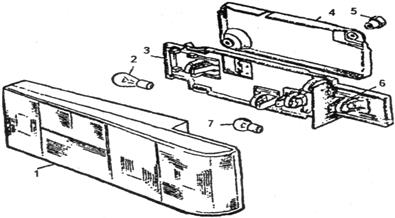 5 — розсіювач; 6 — розсіювач покажчика повороту; 7— лампа;