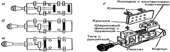а— перше положення; 6— друге положення; в— третє положення; г — деталі перемикача
