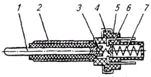 4— ізолюючий ковпачок; 5 — штекерний контакт; 6 — рухомий контакт