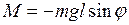 При отклонении маятника от положения равновесия возникает вращающий момент М, созданный силой