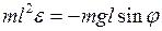 где I – момент инерции маятника, равный ml2 (для материальной точки),
