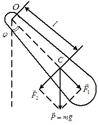 При отклонении маятника на небольшой угол j он начнет колебаться около положения равновесия под действием составляющей