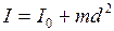 , параллельной данной и проходящей через центр масс тела, и произведения массы тела m на квадрат расстояния d между осями: