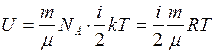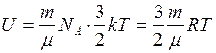 . Определим внутреннюю энергию идеального одноатомного газа массой т. Для этого среднюю энергию одного атома надо умножить на число атомов. В 1 моле содержится