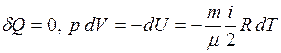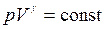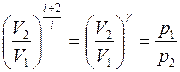 - для двух произвольных состояний. Произведение давления данной массы газа на его объем в степени g есть величина постоянная в адиабатном процессе: