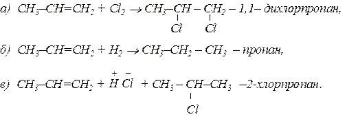Реакції приєднання відбуваються за подвійним зв’язком: