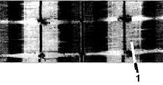 На рисунке показана скелетная мышечная ткань. Назовите структуру под цифрой 1: моторная бляшка