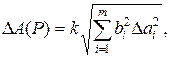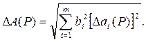 Однако эта оценка является излишне завышенной, поскольку такое суммирование фактически означает, что погрешности измерения всех аргументов одновременно имеют максимальное значение и совпадают по знаку. Вероятность такого совпадения практически равна нулю. Для нахождения более реалистичной оценки переходят к статистическому суммированию погрешностей аргументов. Полагая, что в заданных границах погрешности аргументов распределены равномерно, доверительные границы ΔА(Р) погрешности результата измерения рассчитывают по формуле