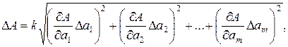 При малом числе аргументов (меньше пяти) простая оценка погрешности результата ΔA получается суммированием предельных погрешностей (без учета знака), т.е. подстановкой границ Δа1, Δа2, … , Δаm в выражение