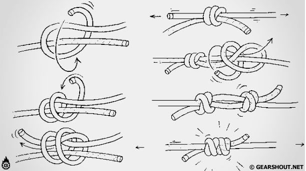 Очень надёжный узел для связывания верёвок одинакового диаметра. Рекомендуется для изготовления петель и оттяжек. Достаточно сложен в вязке и требует большого количества верёвки. Под нагрузкой сильно затягивается. Этот узел лучше использовать в том случае, если не придвидится необходимости его развязывать.
