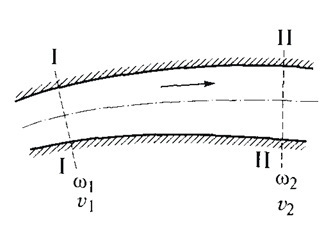 Проведем перпендикулярно движению потока два поперечных сечения I -I и II - II, площади которых обозначим через