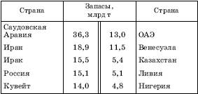 Хотя нефтяные месторождения (всего их 50 тыс.) ныне известны в 102 странах, сверхконцентрация нефтяных ресурсов в провинции Персидского залива предопределяет и первую десятку стран по разведанным запасам нефти, состав которой демонстрирует таблица 14.