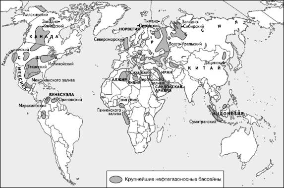Рис. 9. Крупнейшие нефтегазоносные бассейны мира