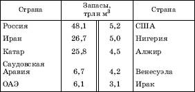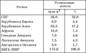 Общегеологические ресурсы природного газа в различных источниках оцениваются от 300 трлн м3 до 600 трлн и выше, но наиболее распространена оценка в 400 трлн м3. Разведанные (доказанные) запасы природного газа к 2004 г. достигли 175 трлн м3. Их распределение по крупным регионам мира и ведущим странам показывают таблицы 15 и 16.