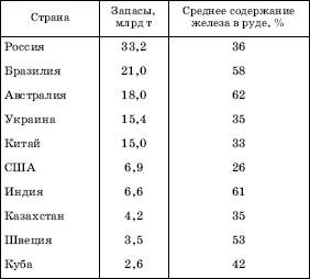 Кроме стран, включенных в таблицу 18, значительными запасами железных руд обладают также Канада, Франция, Венесуэла, Великобритания.