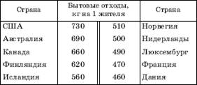 Твердые бытовые отходы (бытовой мусор) – это совокупность твердых отходов и отбросов, образующихся в бытовых условиях. Обычно они состоят из бумаги, металлов, древесины, стекла, полимеров, текстиля, пищевых отбросов и др. Мировым «рекордсменом» по объему бытового мусора были и остаются США, где еще в начале 1990-х гг. соответствующий показатель превышал 200 млн т в год. Однако для определения степени «замусоренности» литосферы обычно применяют не общие, а душевые показатели. Как вытекает из данных, приведенных в таблице 30, США лидируют в мире и по этому показателю. Обращает на себя внимание и то, что в составе первой десятки стран в этом случае фигурируют только экономически развитые страны, отличающиеся к тому же высоким уровнем урбанизации (основную часть бытового мусора дают города, особенно крупные).