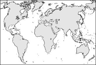 Разные специалисты неоднократно предпринимали попытки картировать нефтяное загрязнение Мирового океана. Однако, как и оценки объема такого загрязнения, их карты различаются очень сильно. На рисунке 33 представлен один из «максималистских» вариантов такого картирования, но в целом он дает более или менее правильное представление об этом явлении.