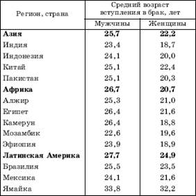 СРЕДНИЙ ВОЗРАСТ ВСТУПЛЕНИЯ В БРАК В НЕКОТОРЫХ РАЗВИВАЮЩИХСЯ СТРАНАХ