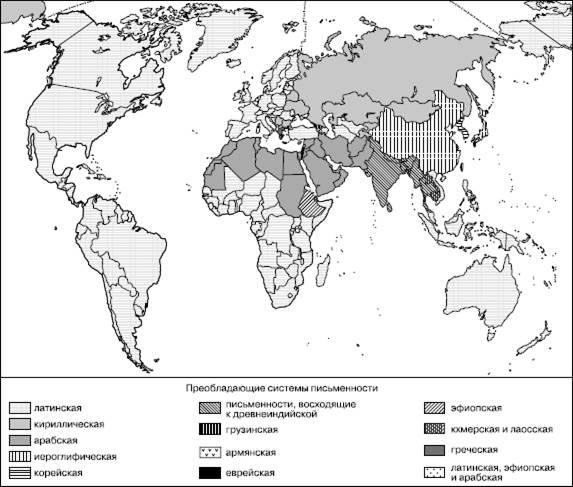 Рис. 43. География основных систем письменности (по Д. В. Зайцу)