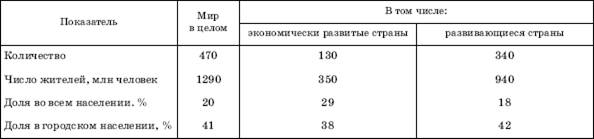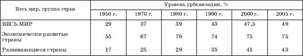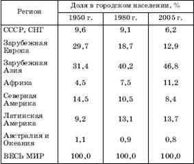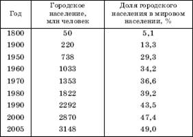 Рассматривая «городской взрыв» второй половины XX– начала XXI в., нужно иметь в виду, что показатель доли горожан во всем населении мира (региона или страны) уже не может дать полного представления о реальном распространении городского образа жизни.