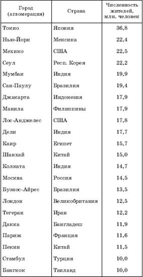 К этим данным можно добавить, что в 2000 г. общее число агломераций-«миллионеров» в мире, по-видимому, уже приблизилось к 400, а доля их в городском и общем населении еще более возросла.