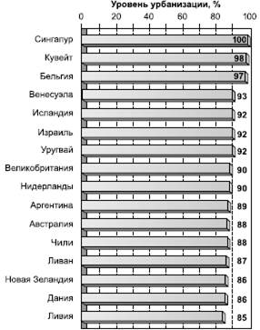 Рис. 52. Наиболее высокоурбанизированные страны мира