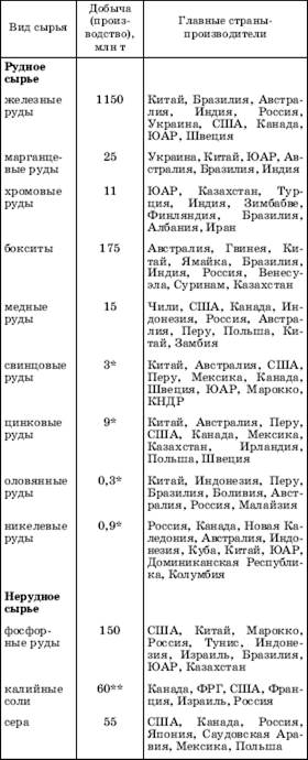 МИРОВАЯ ДОБЫЧА НЕКОТОРЫХ ВИДОВ РУДНОГО И НЕРУДНОГО СЫРЬЯ В НАЧАЛЕ XXI в.