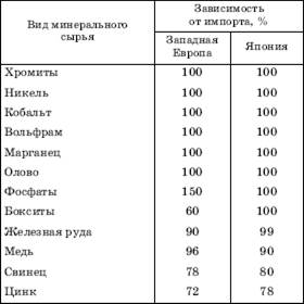 ЗАВИСИМОСТЬ СТРАН ЗАПАДНОЙ ЕВРОПЫ И ЯПОНИИ ОТ ИМПОРТА НЕКОТОРЫХ ВИДОВ МИНЕРАЛЬНОГО СЫРЬЯ