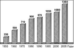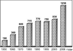 Рис. 77. Динамика мировой добычи железных руд, млн т