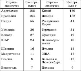 В такой ситуации не могли не измениться и объем, и география международной торговли железосодержащим сырьем. Все большая переориентация черной металлургии экономически развитых стран Запада на дальнепривозное сырье увеличивает территориальный разрыв между основными районами добычи и потребления железных руд. Уже в 1993 г. мировой экспорт их превысил 400 млн т, к концу 1990-х гг. он возрос до 450 млн т, а в 2005 г. до 650 млн т. Это означает, что в каналы международной торговли ныне поступает около 1/2 всех добываемых в мире железных руд.