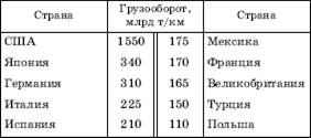 Для оценки работы автомобильного транспорта, как и железнодорожного, обычно пользуются показателями грузооборота и пассажирооборота. Мировой грузооборот этого вида транспорта в 2005 г. составлял 3600 млрд т/ км, т. е. был несколько меньше грузооборота железнодорожного транспорта. По пассажирообороту (11 000—12 000 млрд пассажиро-километров) он занимал внеконкурентное первое место. О том, что главную роль в грузообороте автомобильного транспорта играют в основном страны «большой семерки» Запада свидетельствуют данные, приведенные в таблице 144.