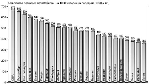 Рис. 106. Страны с наиболее высоким уровнем автомобилизации