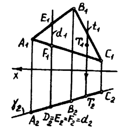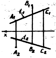Рассмотрим соответствие, возникающее между проекциями плоскостей частного положения. Как было показано выше одной из проекций плоскости частного положения будет прямая линия. По чертежу можно определить, что треугольник