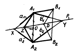 (рис. 4.5). Ось родства – это множество двойных ( сама себе соответствующих) точек. Прямые