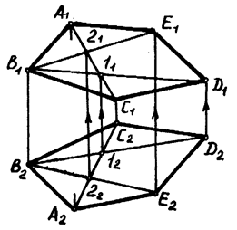 - штриховой линией. На горизонтальной проекции конкурирующими являются ребра