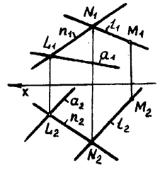 . Имеется еще один признак принадлежности прямой плоскости: для того чтобы прямая принадлежала плоскости, необходимо и достаточно, чтобы она прошла через одну из точек этой плоскости и была параллельна прямой, принадлежащей этой плоскости или параллельна ей. Поэтому прямая а не принадлежит плоскости