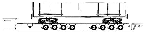 Рис. 2.5.2. Трейлерная система перевозки железнодорожного вагона на автомобильном прицепе-тяжеловозе