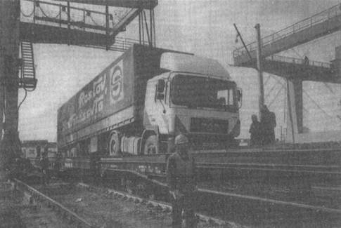 В России стали шире использовать контрейлерную технологию с 1996 г. на направлении от московской товарной станции Кунцево-2 через Минск – Брест до Малашевичи (Польша). Развитие такой технологии зависит от наличия специализированного подвижного состава и его стоимости. Низкорамная платформа колодезного типа, выпускаемая, например, Абаканским вагоностроительным заводом по специальному заказу железных дорог России, стоила в 1996 г. 400 млн руб. Однако первый опыт ее эксплуатации выявил такой недостаток, как слишком большой угол углубления на переходе с железнодорожной платформы. Для отечественных автомобилей, имеющих более высокую базу, это не было проблемой, но тяжелогруженые «Мерседесы» и «Вольво», наиболее часто применяемые в международном сообщении, при погрузке задевали за край перехода.