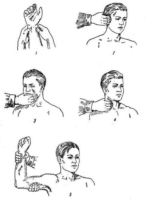 Рис. 1. Пальцевое прижатие артерии при кровотечении.