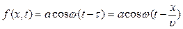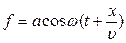 Величина f представляет собой смещение любой из точек с координатой х в момент времени t. При выводе формулы (2) предполагалось, что амплитуда колебаний во всех точках одна и та же. В случае плоской волны это наблюдается, если энергия волны не поглощается средой.